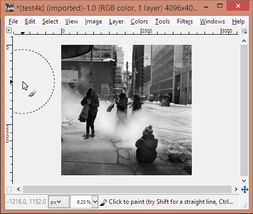 Before I go into details, here’s a GIF of the performance comparison of GIMP vs Papaya while drawing with a brush of diameter 2048 pixels on a 4096 x 4096 pixel image.