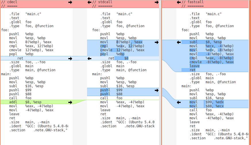 To summarize, calling conventions dictate how parameters are passed to functions, and who is in charge of the cleanup. These are the results we found: